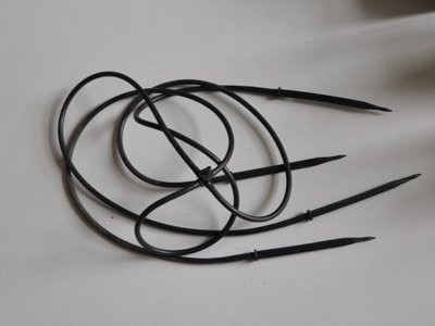 滴箭是滴灌中常用的一種灌水器,外形似箭而名之。通常有彎箭和直箭兩種,前部的箭頭部分長度約10cm,是用于插入土壤或栽培基質中固定導流用,柄部長約5cm,設置有精細迷宮流道,設計更好的柄部在起點有濾網,柄部是插入內徑3mm左右的軟管中。
