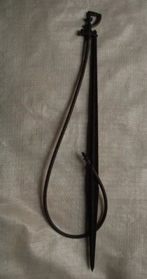 地插微噴組合中,常用的插桿長度為50公分左右,上部通過山字形轉(zhuǎn)換接頭將微噴頭、毛管及插桿相連接,毛管另一側(cè)通過毛管雙接頭與PE管連接。最后將插桿插入土壤固定好,地插微噴組合便完成了安裝。